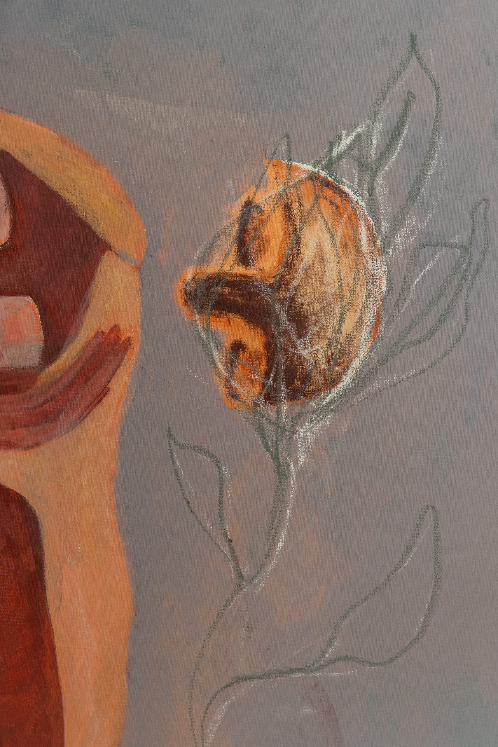 With a background in psychology and mathematical systems, and a period of artistic research at the Gerrit Rietveld Academie, Denters’ practice bridges structural awareness with emotional tracework. Her use of acrylic on linen reflects this balance – building images through layering, concealment, and return.